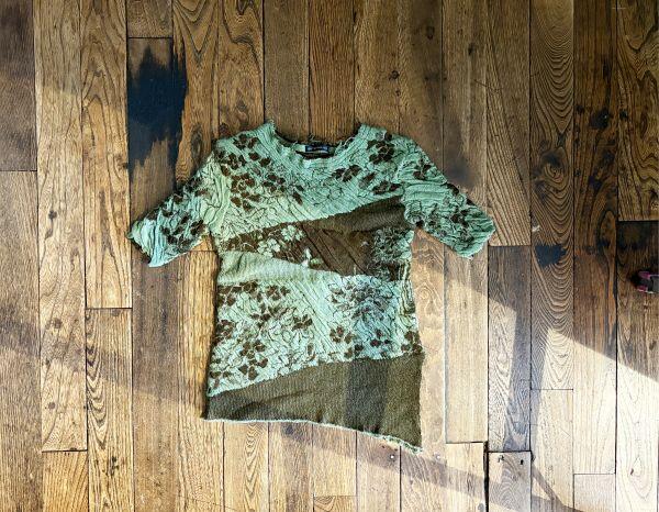 大胆なナナメの切り替えデザインで、独自のアート感を楽しめる服