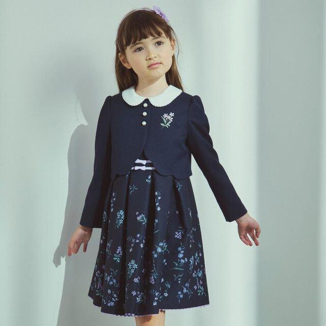 上品な無地のネイビージャケットに金ボタンをあしらい、ハレの日にふさわしい仕上がりにしました。ネクタイは蝶ネクタイにし子供らしさと可愛らしさを演出しています。