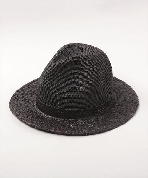 画像カラー:BLACKラフィアで仕立てた中折れハット。サイドに[CA4LA]ロゴ入りプレートを飾り付け、素材を活かすシンプルな仕上がりになっています。存在感抜群のやや高めのクラウンは、コーディネートのアクセントにおすすめです。