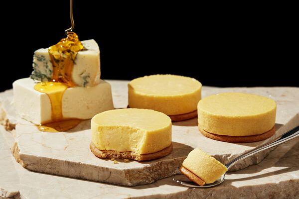 低温で焼き上げることで、しっとりとなめらかな⼝当たりとなり、ゴルゴンゾーラの豊かな⾵味がさらに広がります。