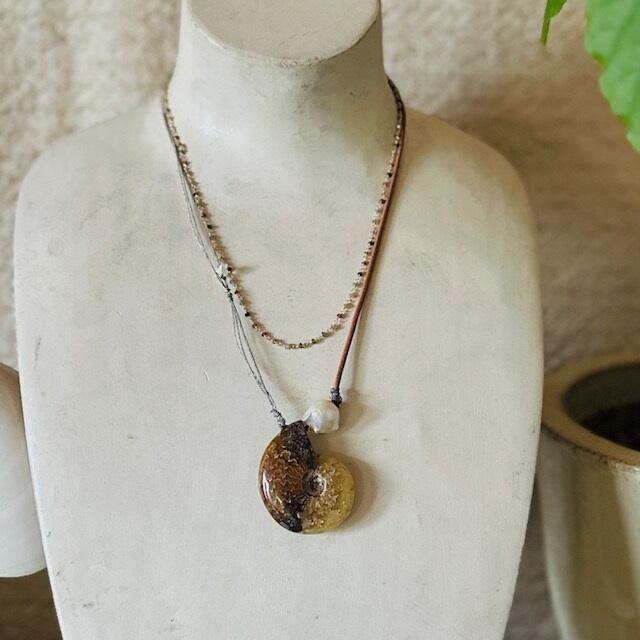 〈下〉アンモナイトレザーネックレス…99,000円