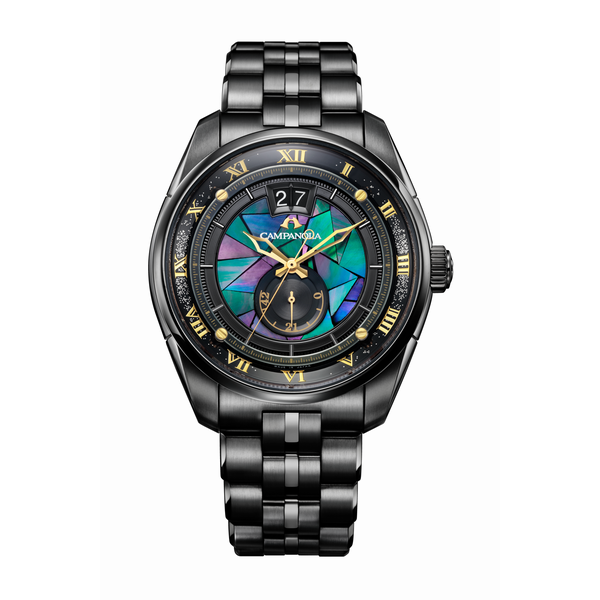 煌めく螺鈿細工の漆文字板にゴールドのアクセントをあしらい、プラチナ粉の蒔絵表現で美しい星々を表現した25周年記念限定モデルです。