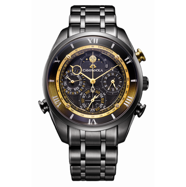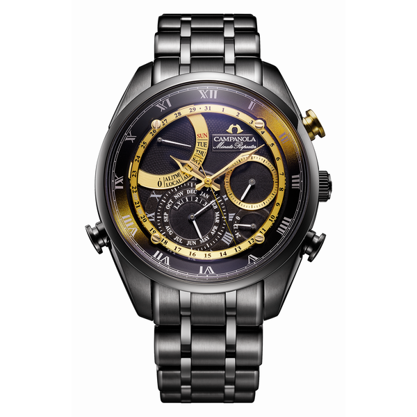 4大複雑機構をクオーツで実現。モダンなデザインで宙に響き、拡がる音の共鳴を可視化しています。