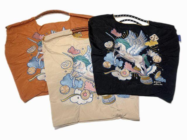 厚手の生地に刺繍でデザインを施したショッピングバッグは、折りたたむとコンパクトになり持ち運びにも便利です。普段の買い物はもちろん、エコなプレゼントとしてもおすすめです。