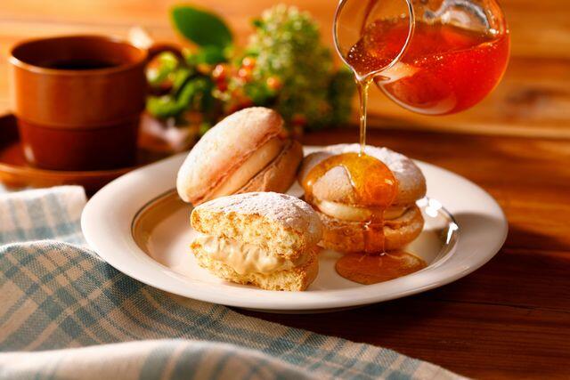 さっくりふんわりのブッセ生地に、カナダ・ケベック州でつくられたメープルシュガーを使ったなめらかなクリームをサンドしました。