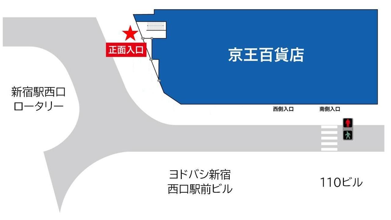 整理券取得日の午前9時15分~午前9時30分までに、新宿店1階 正面入口(下図★)までお越しください。