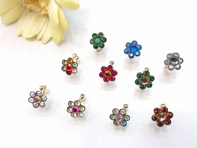 小さなフラワーモチーフが耳元でキラキラと輝きます。 お手持ちのピアスやイヤリングと組み合わせてワンランクアップのおしゃれをお楽しみください。