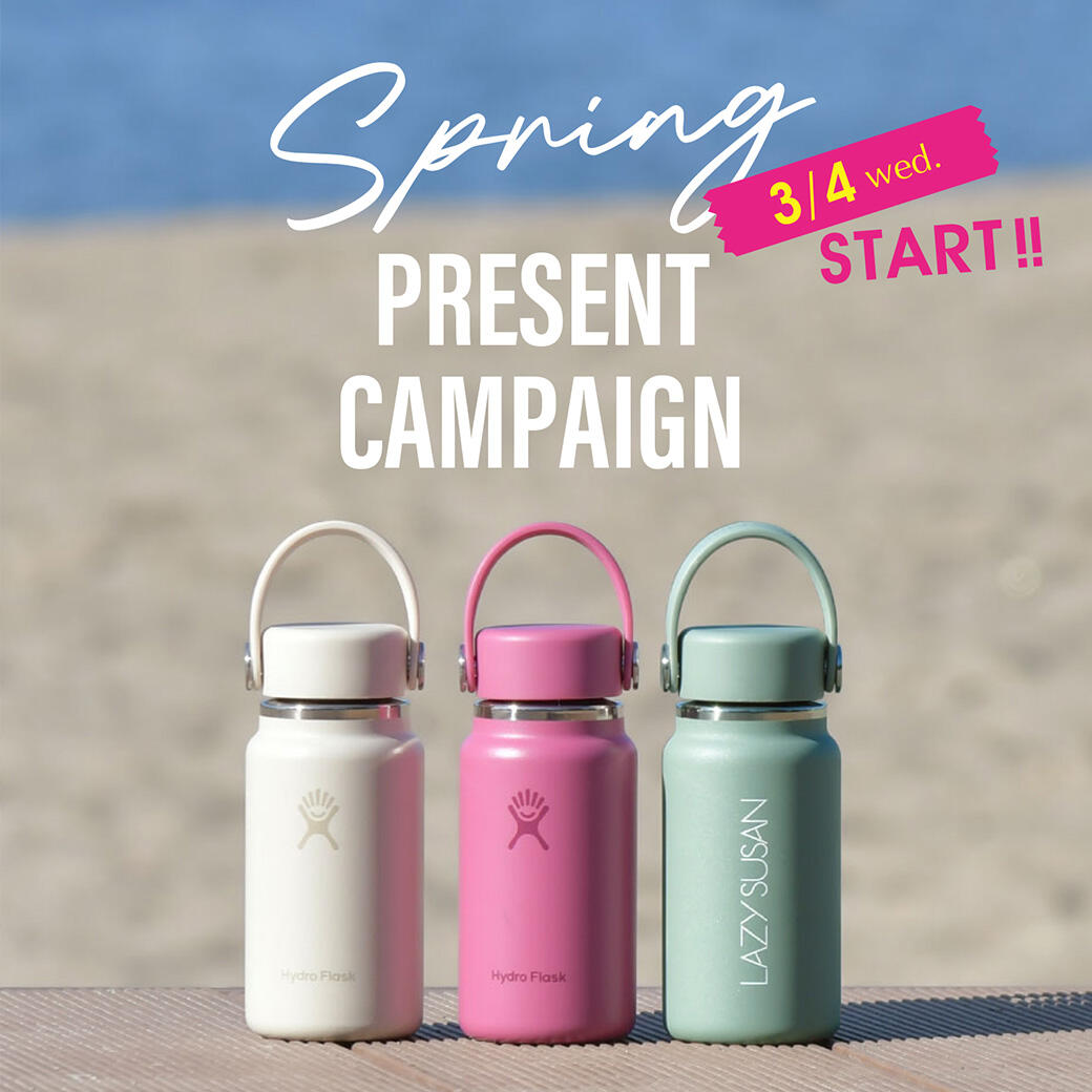 3/4(水)より、税込19,800円以上お買上げのお客様へ、全米で人気に火がつき世界中に広まったステンレスボトル『Hydro Flask(ハイドロフラスク)200mlボトル』をプレゼントいたします。
