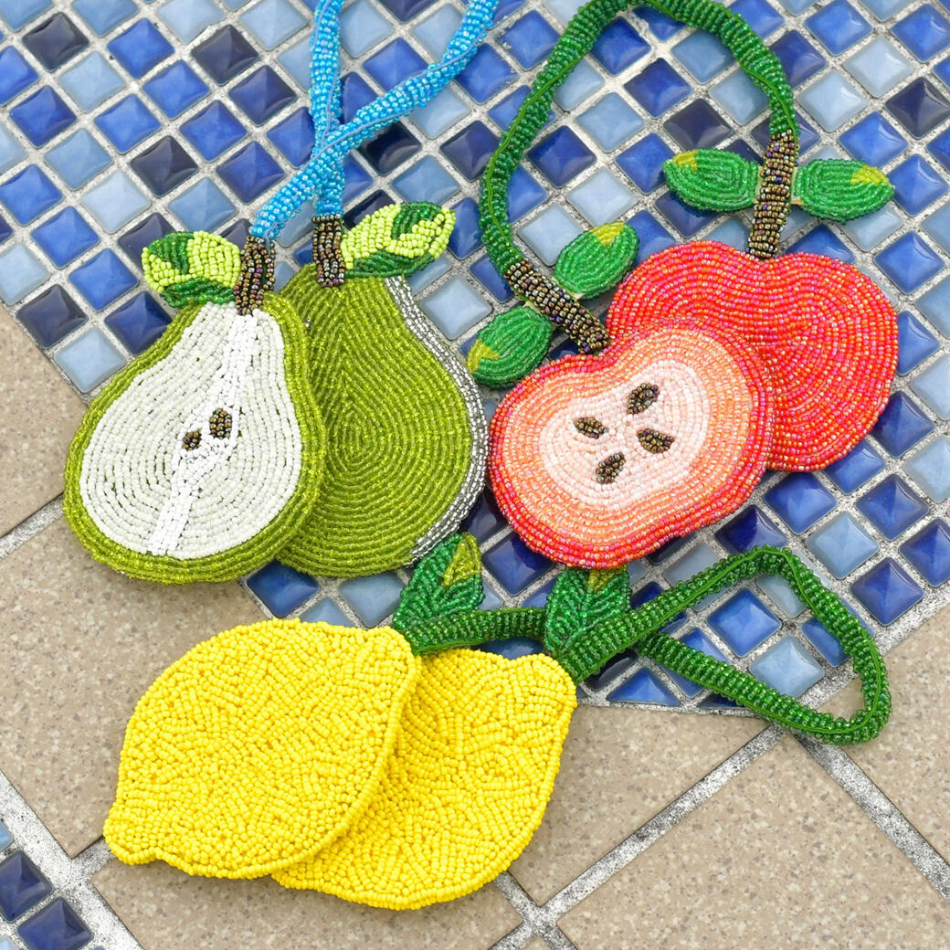 今年は、可愛らしいフルーツモチーフのバッグチャームや、個性的なフェイスモチーフのメガネケースもご用意しました。