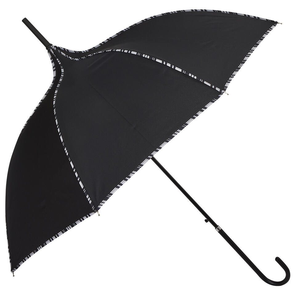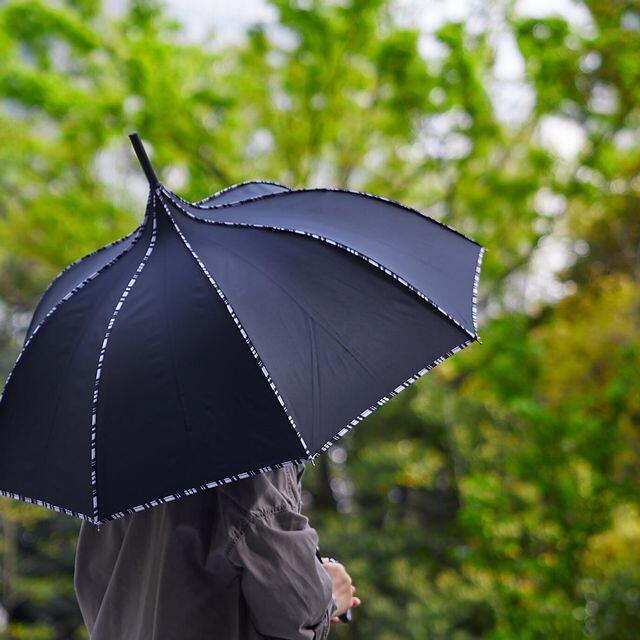ストライプのパイピングがアクセントになった傘はスタイリッシュで優雅な雰囲気が魅力です。