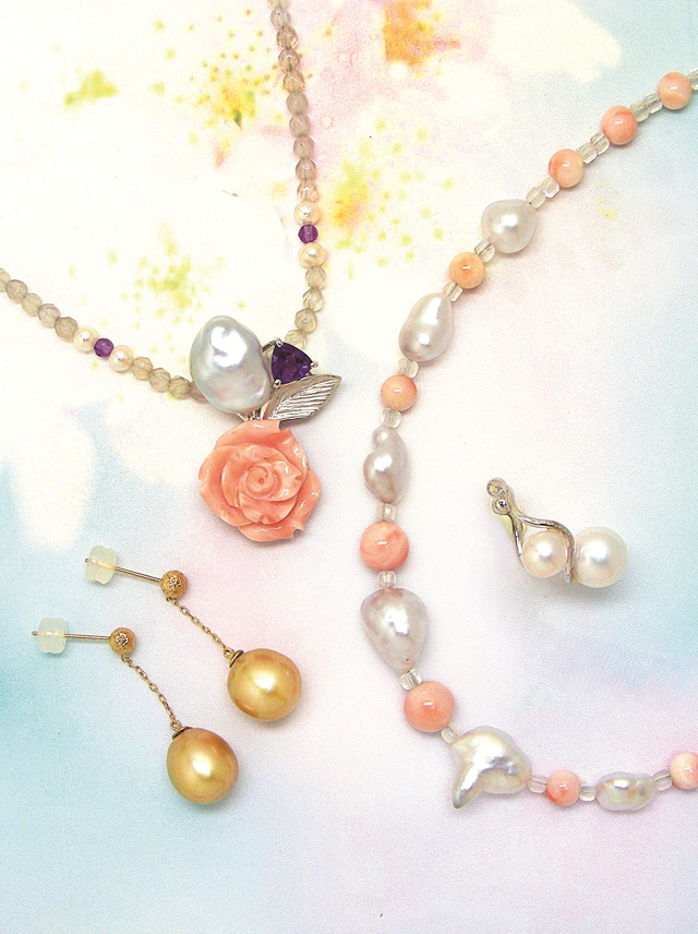 白蝶真珠ケシ・さんご・ムーンストーン