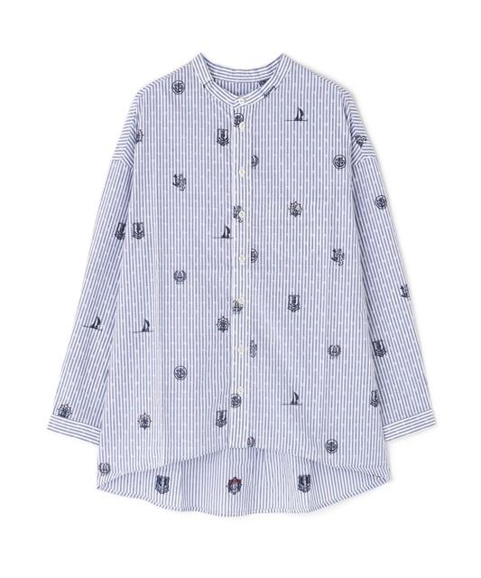 アンカーやヨット、舵などのマリンモチーフを織り込んだ、コットン素材のカットジャガード。立体感のある表情と、遊び心あふれるデザインが特徴です。
