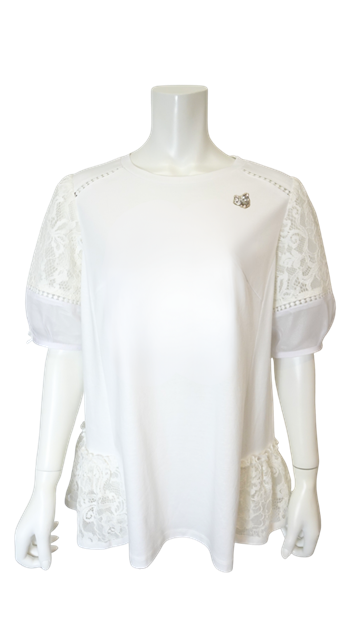 パフ袖レース切替ロングTシャツ 各15,400円