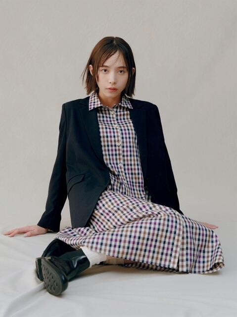 [アクアスキュータム]創立175周年を記念したアニバーサリーチェックでお作りしたシャツドレス。袖を手首が見える短めの丈でお作りしているので、長いシーズンご着用いただけます。