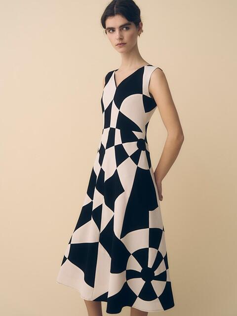 計算されたサークル状の切り替えが目を惹く、タイムレスな魅力のスペシャルなワンピースです。