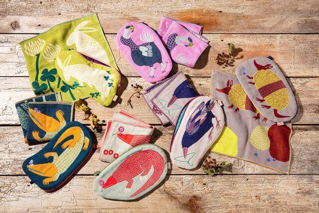ゆっくりとした世界にくらす生き物たちのカワイイ形のポーチです。