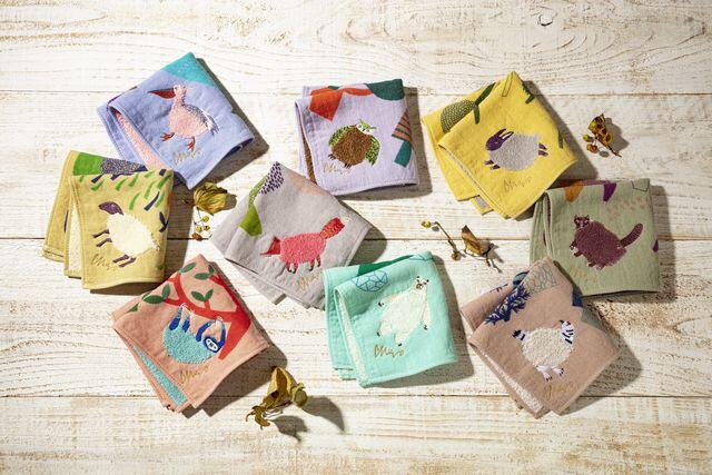 森田MiWさんのちょっと不思議なあったかな絵がタオルやハンカチ、ポーチやトートバッグなどくらしのアクセントになるモノタチに映し出されます。