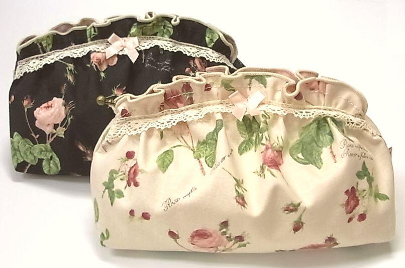 ギャザーポーチ(ベージュ、黒)
