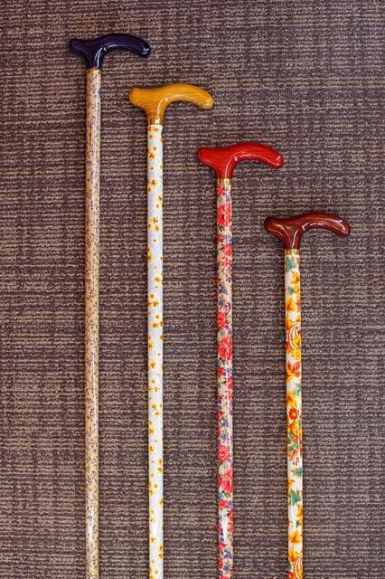 反発力があり身体への衝撃や負担も少ない『楓(かえで)材』を使用し、花柄を施した木製の杖です。