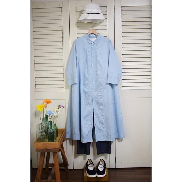 春夏の季節に気持ちの良い素材のワンピースに仕上げました。長すぎない着丈にすることによってパンツを履くなどのレイヤードスタイルにも最適です。