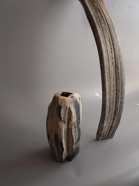 千田先生は「大地の器」「時のカケラ」「torso」「soul」等・・その時々の表現テーマがあり、それに合うよう土を調合し、土の塊の持つ表情により形を得ています。