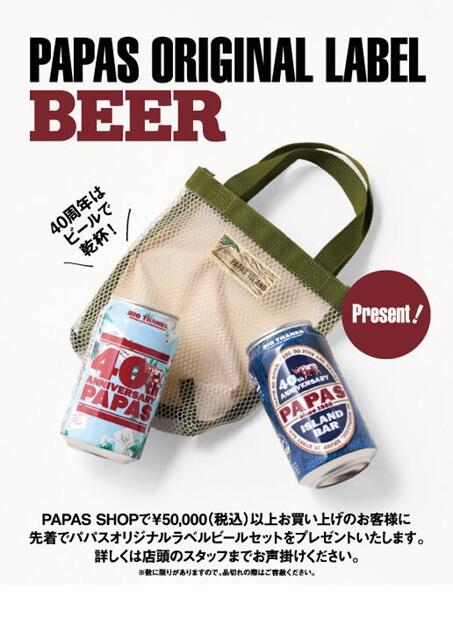 40周年を迎えた[パパス]が、お客様への感謝を込めてオリジナルラベルビールをご用意しました。