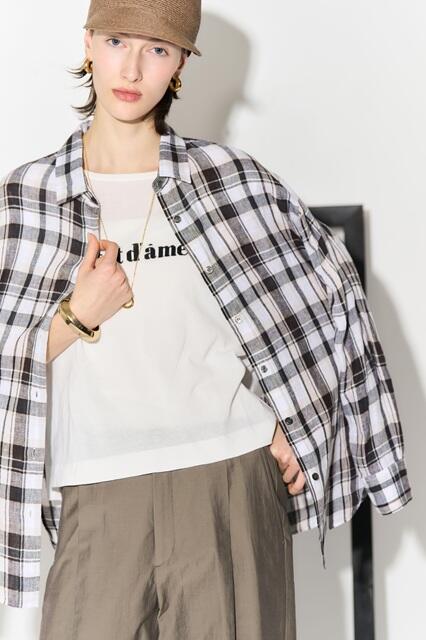 シャツはLIBECO社のピュアリネンを使用し、春夏らしい清涼感のあるチェック柄で新鮮なスタイリングに仕上がります。