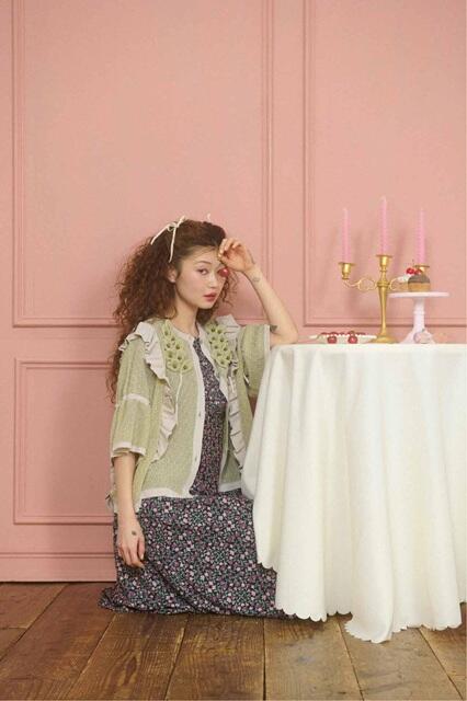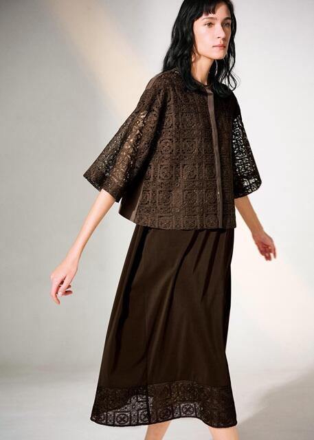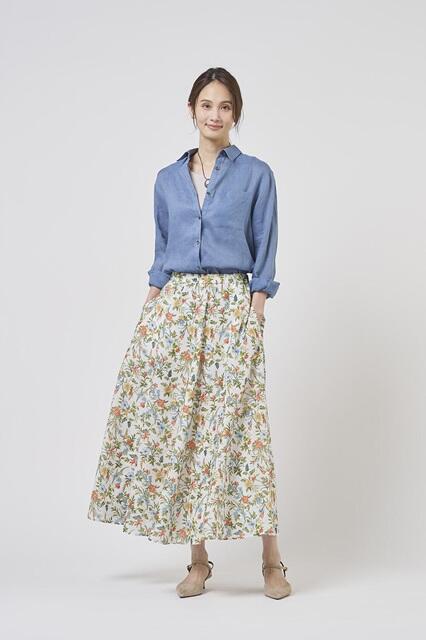 スカートは裾に向けて広がるフレアーが軽やかで優雅な印象。